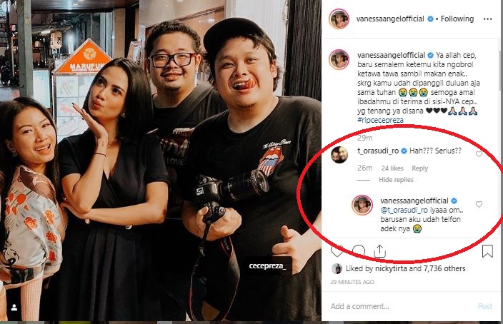 yg tenang ya disana #ripcecepreza," tulis akun @vanessaangelofficial.