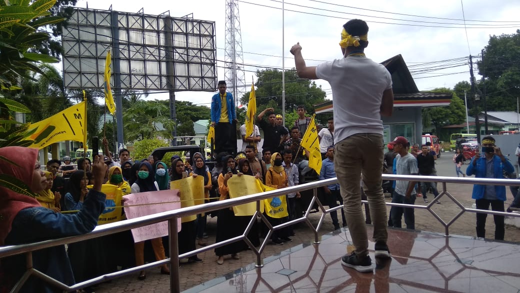 Sekelompok massa mahasiswa yang tergabung dalam PMII Maluku lakukan demo menuntut agar Kepala Cabang Pelni Ambon mengklarifikasi pernyataannya