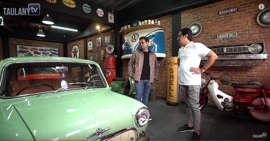 Setelah masuk ke ruangan khusus yang terdapat banyak mobil koleksi sang komedian, Raffi kepincut dengan mobil merek Mini Cooper Moris berwarna hijau milik Andre.