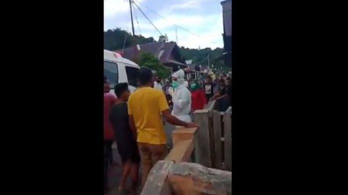 Dalam rekaman video tersebut, warga terlihat mengepung mobil ambulans dan mengusir petugas.