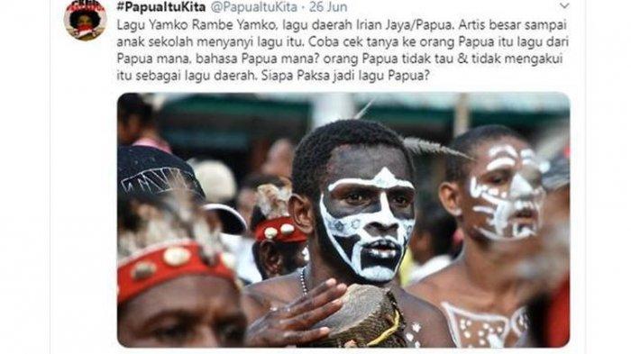 Dalam twit tersebut disebutkan bahwa orang Papua tidak mengenal bahasa lagu tersebut dan mempertanyakan siapa yang memaksa itu menjadi lagu Papua.