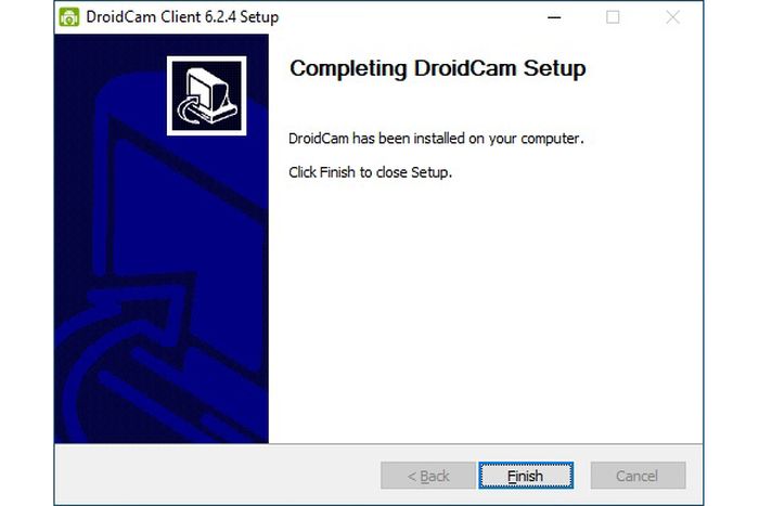 Setelah penginstalan DroidCam pada Windows 10 selesai, jangan lupa untuk mengeklik tombol [Finish].