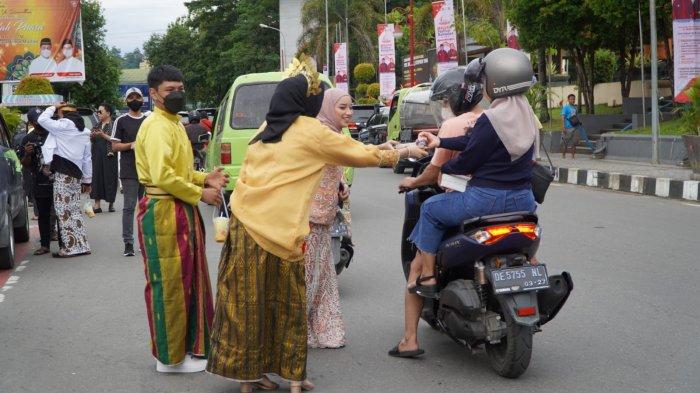 Ada Pengantin Lengkap dengan Baju Adat Bagi Takjil untuk Warga yang Lewat di Gong Perdamaian -Ambon