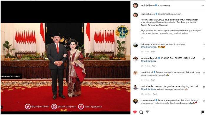 Melalui unggahan foto di akun Instagram miliknya @hadi.tjahjanto mengunggah sebuah foto bersama sang istri usai dirinya dilantik Presiden Jokowi.