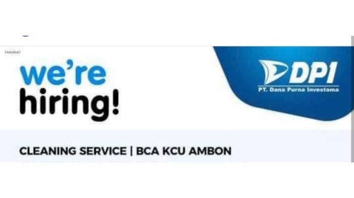 PT Dana Purna Investama sedang membuka loker untuk menempati posisi Cleaning Service di Bank BCA KCU Ambon.
