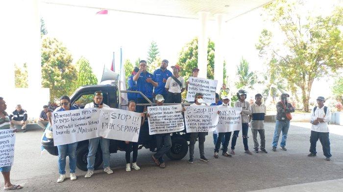 Tuntutan tersebut disampaikan perwakilan KSBSI Maluku, Marlon Kelau saat berunjuk rasa di Kantor DPRD Provinsi Maluku, Selasa (14/11/2023).