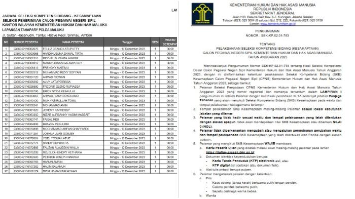 Berikut daftar nama peserta yang mengikuti tes SKB Kesamaptaan Seleksi Penerimaan CPNS kantor wilayah Kemenkumham MalukuTes dilakukan pada hari Minggu