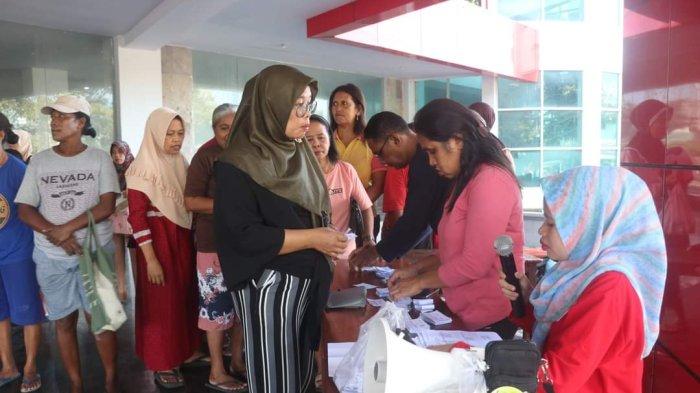 Warga tampak antusias mendatangi lokasi pasar untuk mendapatkan sembako murah.