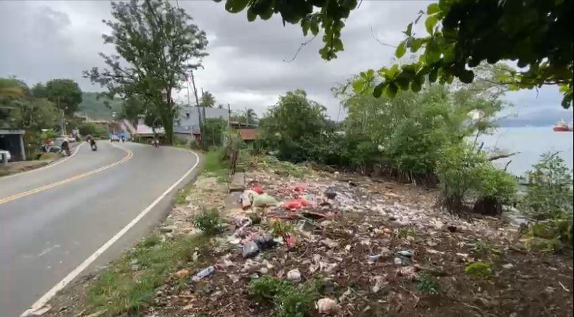 Mirisnya, tumpukan sampah tepat sisi di jalan Wolter Monginsidi, Lateri, Kecamatan Baguala, Kota Ambon.