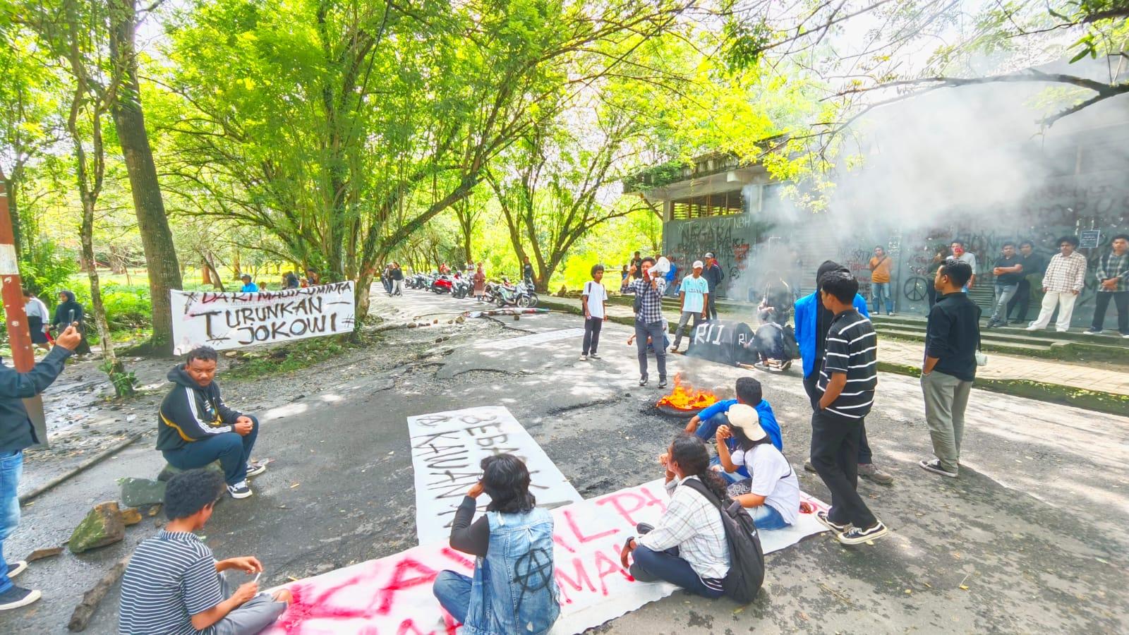Pantauan TribunAmbon.com di lokasi sekitar pukul 14.30 WIT, terlihat puluhan mahasiswa membawa sejumlah spanduk dan poster, salah satunya bertuliskan 'Dari Maluku Minta Jokowi Turun'.