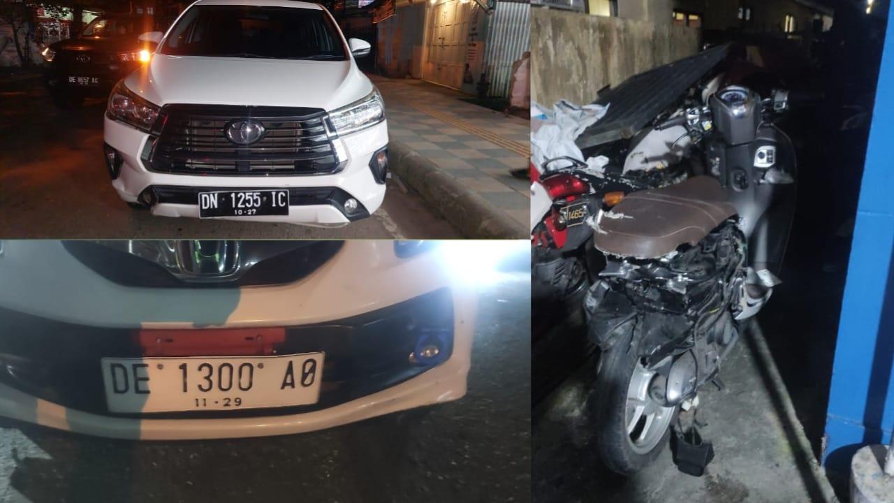 Mobil tersebut lalu menabrak sepeda motor Honda Scoopy DE 6654 NT yang dikendarai Denis Matitaputty (27) dengan dua orang boncengan, termasuk seorang anak berusia tiga tahun.