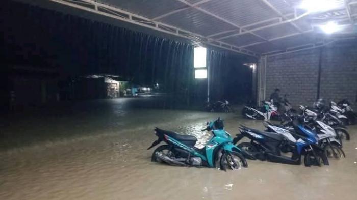 Sejumlah kendaraan roda dua yang terparkir di halaman dan teras rumah turut terendam banjir.