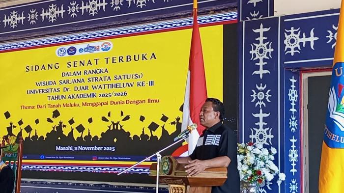 MASOHI,TRIBUNAMBON.COM - Wakil Gubernur (Wagub) Maluku, Abdullah Vanath menghadiri wisuda Universitas Dr Djar Wattiheluw di Kota Masohi, Maluku Tengah, Selasa (11/11/2025).
