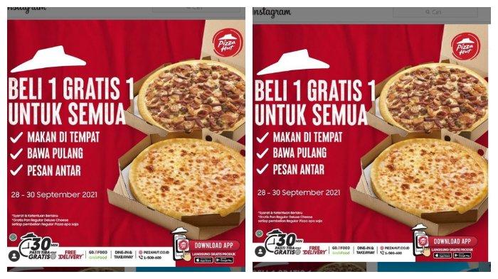 Nikmati promo Pizza Hut dengan pembelian 1 reguler varian apa saja dapat gratis 1 pan regular deluxe cheese pizza apa saja.