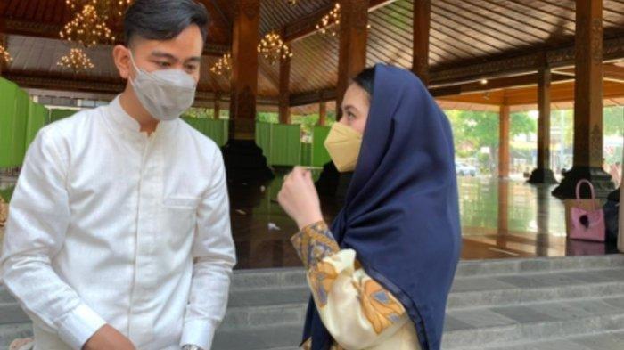 Selvi Ananda terlihat sederhana saat mendampingi Gibran Rakabuming Raka, menunaikan salat Id di Pendapi Balai Kota Solo, Kamis (13/5/2021).