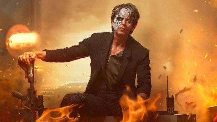 Dalam sebuah adegan dari film terbarunya Jawan, Khan yang berkepala plontos dan mengancam terlihat dikelilingi oleh penumpang yang ketakutan